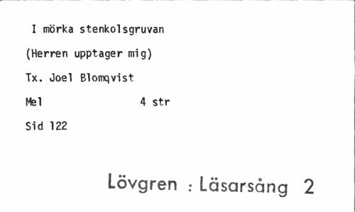 //// I mörka stenkolsgruvan (Herren upptager mig) Tx. Joel Blomqvist Mel 4 str //// Sid 122 //// Lövgren ; Läsarsång 2 ////
