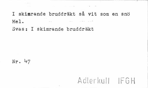 //// I skimrande bruddräkt så vit som en snö Mel. //// Svas: I skimrande bruddräkt Nr. M-7 //// Adlerkull IFGH ////