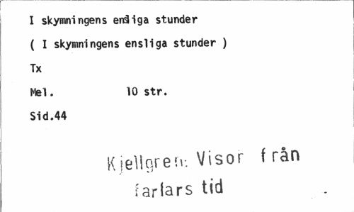 //// I skymningens enäiga stunder ( I skymningens ensliga stunder ) Tx //// Mel. 10 str. //// Sid.44 //// K jeUqrerv. Visor f rån fariars tid ////