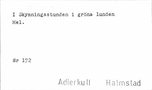//// I Skymningsstunden i gröna lunden Mel. //// Nr 172 //// Adlerku II Halmstad ////