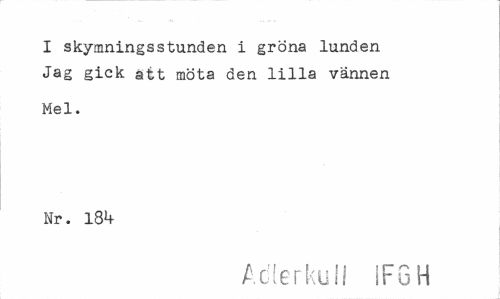 //// I skymningsstunden i gröna lunden Jag gick att möta den lilla vännen //// Mel. Nr. 18*+ //// Adlerku il IFGH ////
