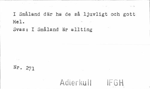 //// I Småland där ha de så ljuvligt och gott Mel. //// Svas: I Småland är allting Nr. 271 //// Adierku il IF 6 H ////