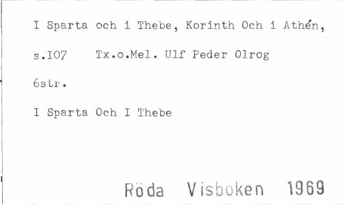 //// I Sparta och i Thebe, Korinth Och i Athen, //// s.107 Tx.o.Mel. Ulf Peder Olrog 6str. //// I Sparta Och I Thebe //// Roda Visboken 1969 ////