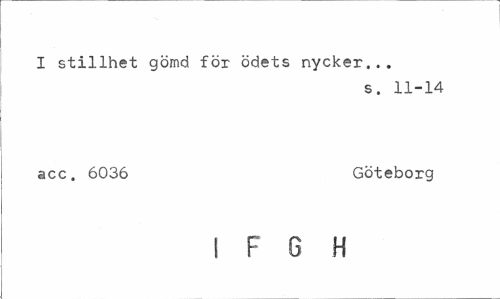 //// I stillhet gömd för ödets nycker... //// s. 11-14 //// acc. 6036 Göteborg //// I F 6 H ////