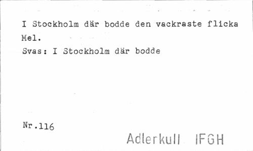 //// I Stockholm där bodde den vackraste flicka Mel. //// Svas: I Stockholm där bodde Nr. H6 //// Adlerkull IFGH ////