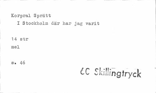 //// Korpral Sprätt //// I Stockholm där har jag varit //// 14 str mel //// s. 46 //// tc Skillingfryck ////