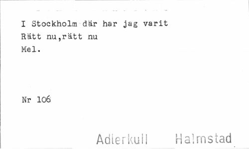 //// I Stockholm där har jag varit //// Ratt nu,rätt nu //// Mel. //// Nr 106 //// Adlerkull Halmstad ////