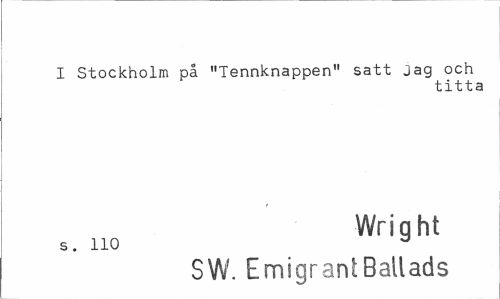 //// I Stockholm på "Tennknappen" satt jag och //// titta //// Wright //// s. 110 3 //// SW. EmigraniBallads ////