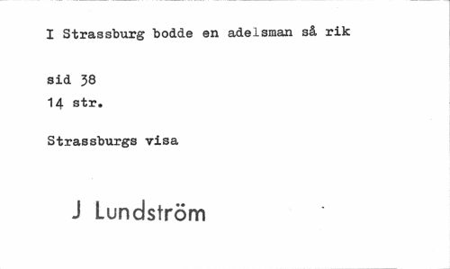 //// I Strassburg bodde en adelsman så rik //// sid J8 14 str. //// Strassburgs visa //// J Lundström ////