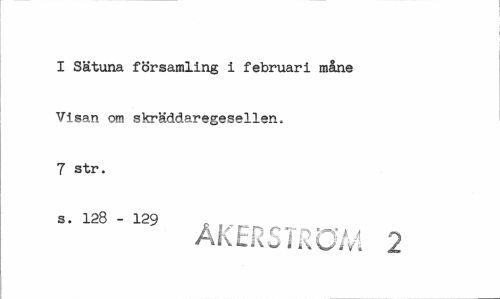 //// I Sätuna församling i februari måne Visan om skräddaregesellen. 7 str. //// s. 128 - 129 0 . . //// ÅJCFpCTorfM O //// /-\t\Lt\ w i å\ Wi Vi £ ////