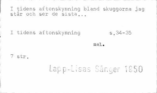 //// 1 tidens aftonskymning bland skuggorna jag står och ser de sista... //// I tidens aftonskymning s.34-35 //// mel. //// 7 str. //// L 3 p p - Lisss S ci n y e r \ 8 5 0 ////