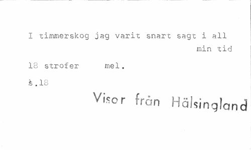 //// I timmerskog jag varit snart sagt i all //// min tid //// 18 strofer mel, 4 .18 //// Visor från Hälsingland ////