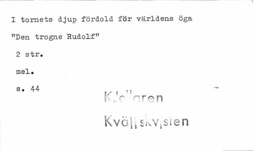 //// I tornets djup fördold för världens öga "Den trogne Rudolf" 2 str. mel. s. 44 //// Fy* S •• //// nren K vö|, SKV|Sren ////
