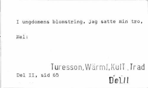 //// I ungdomens blomstring, jag satte min tro, Mel: //// Turesson,Wärmi.KulT Jr ad //// Del II, sid 65 r • //// Del./! ////