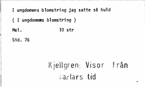 //// I ungdomens blomstring jag satte så huld ( I ungdomens blomstring ) Mel. 10 str //// Sid. 76 //// Kjellgren: Visor från i ar fars tid ////