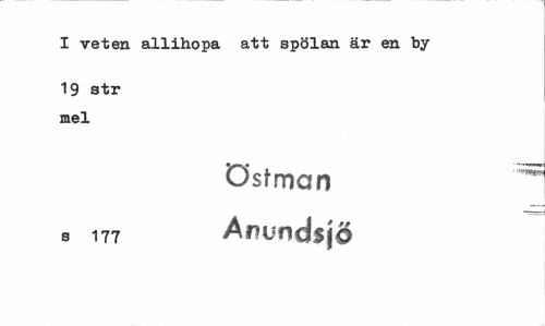 //// I veten allihopa att spölan är en by //// 19 str mel //// östman ^ //// s 177 Amné% jo ////