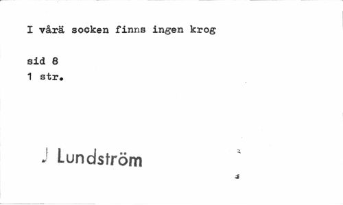 //// I vårä socken finns ingen krog //// sid 8 1 str» //// J Lundström //// j ////