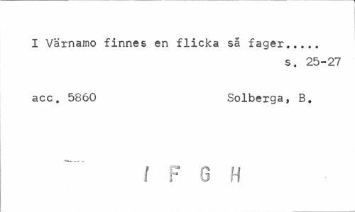 //// I Värnamo finnes en flicka så fager... //// s. 25-27 //// acc. 5860 Solberga, B. //// t F G H ////