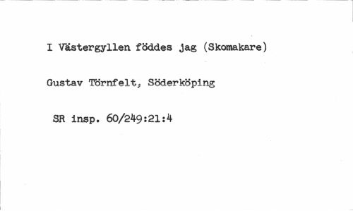 //// I Västergyllen föddes jag (Skomakare) Gustav Törnfelt, Söderköping SR insp. 60/249:21:4 ////