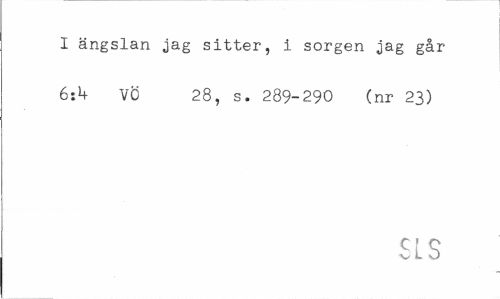 //// I ängslan jag sitter, i sorgen jag går 6ik vö 28, s. 289-290 (nr 23) //// SLS ////