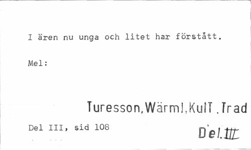 //// I ären nu unga och litet har förstått. Mel: //// Turesson,Wärmj,KuiT Jr ad //// Del III, sid 108 D^lttt- ////