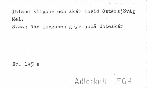 //// Ibland klippor och skär invid Östersjövåg Mel. //// Svas s När morgonen gryr uppå Soteskär Nr. Ib 3 a //// Adlerkull IF G H ////