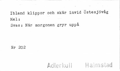 //// Ibland klippor och skär invid Östesjövåg Mel: //// Svas: När morgonen gryr uppå Nr 202 //// Adlerkull Halmstad ////