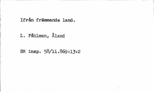 //// Ifrån främmande land. L. Påhlman, Åland SR insp. 58/11.869:1352 ////