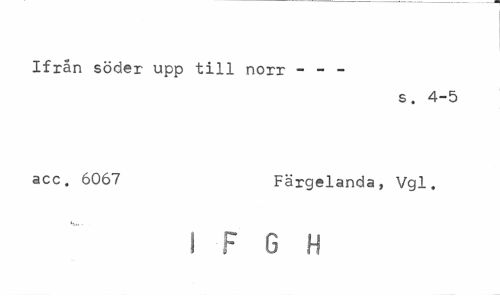 //// Ifrån söder upp till norr - - - //// s. 4-5 //// acc. 6067 Färgelanda, Vgl. //// I F G H ////