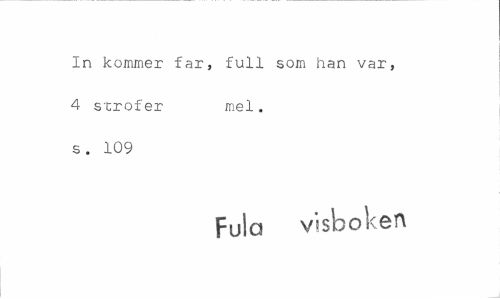 //// In kommer far, full som han var, 4 strofer mel. //// s. 109 //// Fula visboken ////