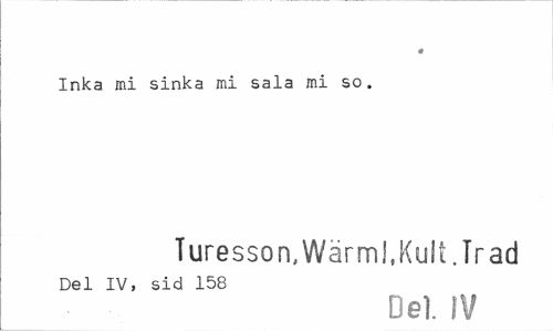 //// « //// Inka mi sinka mi sala mi so. //// Turesson, Wärml, Kult. Tr ad //// Del IV, sid 158 //// Del IV ////