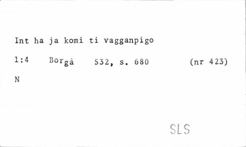 //// Int ha ja komi ti vagganpigo //// 1:4 Borgå. 532, s. 680 (nr 423) //// N //// SL S ////