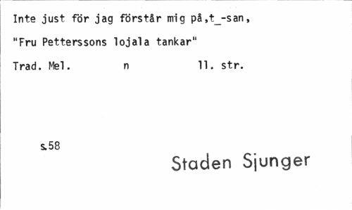 //// Inte just för jag förstår mig på,t_-san, //// "Fru Petterssons lojala tankar" //// Trad. Mel. n 11. str. //// s.58 //// Staden Sjunger ////