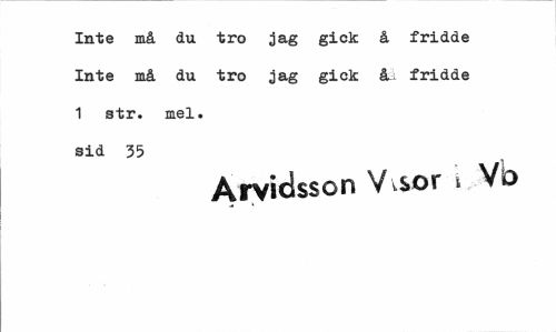 //// Inte må du tro jag gick å frid.de Inte må du tro jag gick å fridde 1 str. mel. sid 35 //// Arvidsson V.sor i Vo ////