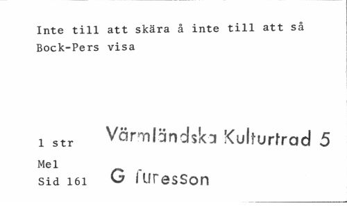 //// Inte till att skära å inte till att så Bock-Pers visa //// i str Värmländska Kulfurfrad 5 //// Mel //// sid 161 G l uresSon ////