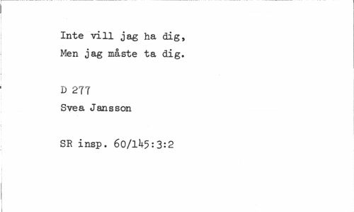 //// Inte vill jag ha dig, Men jag måste ta dig. //// D 277 //// Svea Jansson SR insp. 60/11+5 : 3:2 ////