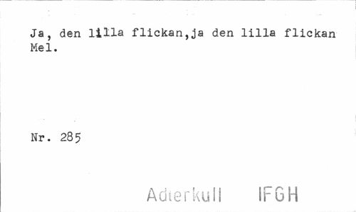 //// Ja, den lilla flickan,ja den lilla flickan Mel. //// Nr. 285 //// Adlerkull IFGH ////