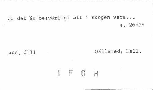 //// Ja det är besvärligt att i skogen vara... //// s. 26-28 //// acc. 6111 Gällared, Hall. //// I F G H ////