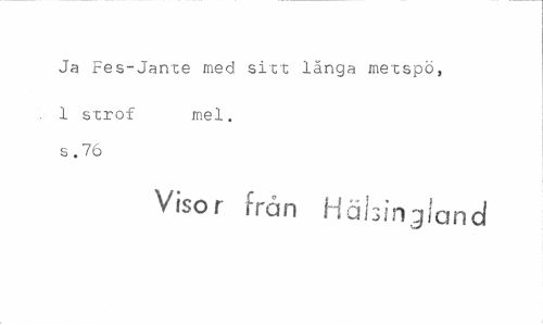 //// Ja Fes-Jante med sitt länga metspö, //// 1 strof mel. //// s .76 //// Visor från Hälsingland ////