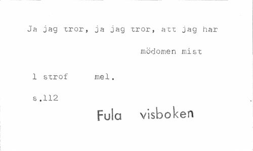 //// Ja jag tror, ja jag tror, att jag har //// mödomen mist //// 1 strof mel. s .112 //// Fula visboken ////