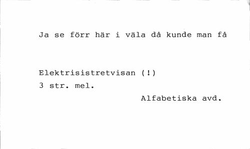//// Ja se förr här i väla då kunde man få //// Elektrisistretvisan (!) 3 str. mel. //// Alfabetiska avd. ////