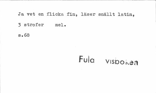 //// Ja vet en flicka fin, läser snällt latin, 3 strofer mel. s. 68 //// Fuia visbokan ////