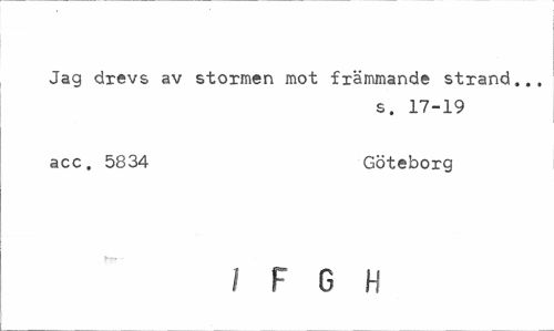 //// Jag drevs av stormen mot främmande strand... //// s. 17-19 //// acc. 5834 Göteborg //// i F G H ////