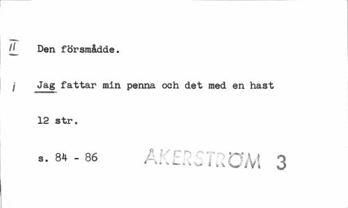//// tj_ Den försmådde. //// j Jag fattar min penna och det med en hast 12 str. //// s. 84 - 86 A^E^T ^V 1 ////