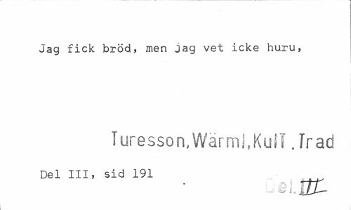 //// Jag fick bröd, men Jag vet icke huru, //// luresson,Wärml.KufT. Trad //// Del III, sid 191 //// 47 ii. \ t_J-~— ////
