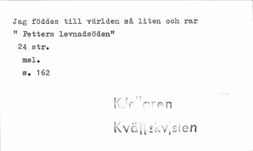 //// Jag föddes till världen så liten och rar " Petters levnadsöden" 24 str. mel. s. 162 //// i.,' r r r //// K., c rr^n Kvciiskvjsten ////