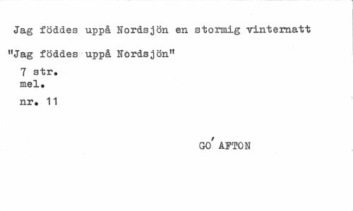 //// Jag föddes uppå Nordsjön en stormig vinternatt //// "Jag föddes uppå Nordsjön" //// 7 str. mel. //// nr. 11 //// GO' AFTON ////