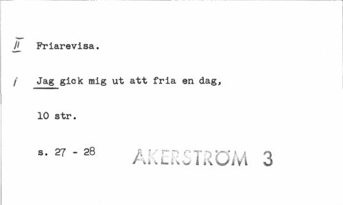 //// jj^ Friarevisa. //// / Jag gick mig ut att fria en dag, 10 str. //// s. 27 - 28 R i~ f r* pj-i^f i q //// o I i< W i Vi O ////