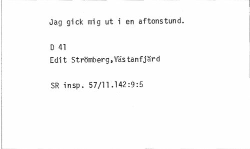 //// Jag gick mig ut i en aftonstund. D 41 //// Edit Strömberg,Västanfjärd SR insp. 57/11 .142:9:5 ////