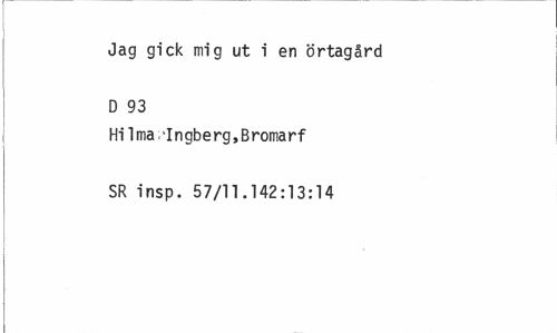 //// Jag gick mig ut i en örtagård D 93 //// Hilma Tngberg,Bromarf SR insp. 57/11.142:13:14 //// ¦ ////